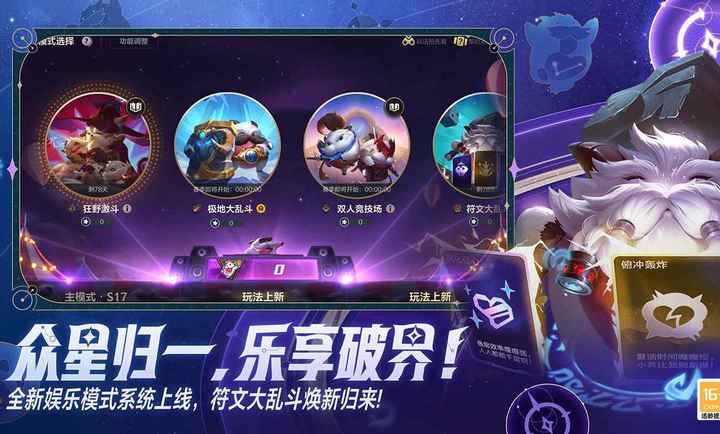 【心源焕醒,3周年庆典】《英雄联盟手游》3周年庆典版本震撼开启!玩家们,准备好唤醒你的热血吧!新英雄阿萝拉、巴德、维克兹将陆续降临峡谷。暴击装备与附魔调整,带来全新战斗体验!S18赛季携排位优化来袭:SVP补偿机制正式上线,让你的高光表现不再浪费;宗师拆段,三段登神之路,助力你更顺畅冲击最强王者!同时,新版本对战场节奏进行了综合调整,对局体验将更加流畅顺滑!备受期待的符文大乱斗开启【魔力汇流】新赛季,加入大量妙趣横生的新符文卡和全新符文连锁,策略乐趣无限!3周年庆典,海量福利、限定皮肤道具及活动好礼持续放送,狂欢不止!现在就来加入《英雄联盟手游》,一起战个痛快!