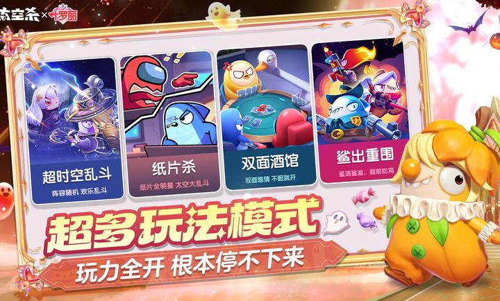 《太空杀》惊魂捣蛋节开幕,携手超人气国漫《精灵梦叶罗丽》破次元联动!首个公共互动地图重磅上线,来「惊魂小镇」地图参与挖宝,开「千万金星」,领豪华大奖!福利加码:登录就送「联动限定皮肤」,免费兑换「万圣节专属套装」!这个充满魔法和推理的捣蛋派对,就等你啦! 玩法更新 1、公共地图-惊魂小镇: - 挖宝:寻找神秘土堆挖宝得海量奖励! - 变身:伪装为地图内的任何物体,展开你的捣蛋! -剧情:与身份对话,了解他们的背后故事! 2、身份觉醒-捣蛋鬼:报告捣蛋过的阵亡玩家的人,会议上无法发言或打字 活动更新 1、叶罗丽联动神话夺宝:精灵魔法,缔结契约,叶罗丽联动皮肤「冷漠罗丽」华丽登场,10月31日起,参与神话夺宝即有机会获得神话时装,首抽仅需2夺宝币,最多10轮必得所有奖励 2、水王子鲨鲨免费送:踏浪而来,涤荡凡尘,10月31日-11月23日,完成活动任务即可免费领取水王子鲨鲨 3、捣蛋鬼身份时装:一起来制造点麻烦~,全新身份时装【捣蛋鬼】顽皮登场,10月31日-12月04日,参与身份时装夺宝即有机会获得双体型传说套装,活动期间兑换还可享受限时6折 4、惊魂商店:胆小鬼勿进,里面有惊喜!10月31日-11月23日,惊魂商店限时开启,本次共上新3款万圣主题装扮,活动期间购买捆绑包还可享半价优惠 5、万圣商店:不给糖就捣蛋!万圣主题鲨鲨套装限时返场,活动期间购买幽灵宝宝、白骨宝宝和死神鲨鲨享受半价优惠 6、万圣派对:叮~你的万圣奇妙礼,10月31日万圣限定礼物夺宝开启,参与夺宝有机会获得万圣限定传说礼物
