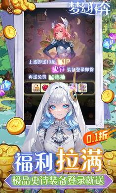 上线福利 1.上线即送VIP10、免费十连抽 2.充值比例1:2000,全场永久0.1折! 3.开局就送三星史诗扫怪武器,直接秒秒秒! 4.核心角色碎片,海量材料任性送 公测五倍钻石返利活动时间:11.21-11.26返利金额仅限单日累积,不能多日累积!注:返利货币为钻石返利发放方式:自动返利(邮件)【充值月卡、终身卡、礼包、基金】是否计入返利:是★100-499元返20%*5★500-999元返30%*5★1000-2999元返40%*5★3000-4999元返60%*5★5000-9999元返80%*5★10000元及以上返利100%*5备注:满足条件单日充值,充值额度为折前价格(游戏内展示价格),与游戏内展示的“每日返利”活动为同一活动,游戏内充值购买的礼包投资均计入,次日0点邮件自动发放奖励,返利金额仅限单日累积,不能多日累积!此活动生效期间,单日钻石返利活动不生效。活动时间:永久 活动内容: 1.玩家在所在平台的《梦幻狂奔(0.1折超爽割草)》评论区中发表您的五星好评/五星攻略评论 2.评论字数不低于15字,并附加1至3张游戏截图即可参与活动 活动规则:活动禁止任何违规行为(盗用他人截图),一旦发现将取消获奖资格,每个账号只能参与一次且需要对应账号主页信息匹配 发放方式:带上评论截图、平台对应账号主页信息截图、区服、角色名,联系客服申请,48小时内通过礼包形式发放(周末节假日顺延) 礼包内容:钻石*500000、金钥匙*10、银钥匙*10、粉尘*500000活动时间:开服至长期 活动内容: 开服首位折后真实充值500元的玩家,可联系平台客服申请该服冠名权和冠名奖励(礼包码形式发放),先到先得,申请成功后,该服全服玩家获得全服奖励(邮件发放)。 冠名奖励:随机史诗S级武器*3+进化石*100+金钥匙*100+钻石*2000000 全服奖励:随机英雄碎片*30+金钥匙*10 活动说明: 1.在法律允许的范围内本公司拥有最终解释权 2.仅限折扣后真实充值金额参与 3.冠名名称7个汉字内,禁止出现违规词汇包括辱骂涉及政治等。单日大额额外 发放方式:次日人工客服申请 邮件领取单日累计充值每满300元(折后),可以从以下奖励任选1种方案进行申请,每种方案可重复选择 额外方案如下: 方案1:随机角色碎片*100 方案2:金钥匙*100 方案3:随机传说品质装备*1(不含S级装备) 方案4:随机史诗S级装备*1 方案5:紫焰晶核(强化概率翻倍)*3 方案6:守护之瓶(强化保护)*1 方案7:金制雕像*50 方案8:随机图纸*300 方案9:进化石*100 方案10:金币*1亿单日累充道具返利活动 活动时间:永久 活动规则: 1、奖励道具均为绑定道具。 2、充值到对应档位可领取前面档位所有奖励。例:满30元档可领取30/20/10元所有奖励。 3、充值返利为折后真实充值额度,返利在第二日凌晨0点自动返利至玩家邮件,无需申请。 单日累计充值10元:粉尘*500w+银制雕像*150 单日累计充值20元:金币*500w+粉尘*500w+骰子*100 单日累计充值30元:金币*1000w+粉尘*1000w+随机角色碎片*30 单日累计充值50元:金币*1000w+粉尘*1000w+随机门票*50 单日累计充值100元:金币*1000w+粉尘*1000w+随机图纸*250 单日累计充值150元:金币*1500w+粉尘*1500w+随机史诗装备*1 单日累计充值200元:钻石*2000k+银制雕像*150+随机传说装备*1 单日累计充值250元:钻石*2500k+金制雕像*100+随机传说装备*2 单日累计充值300元:钻石*3000k+金制雕像*150+进化石*100+随机史诗S装备*1 活动时间:12.8-12.10返利金额仅限单日累积,不能多日累积!注:返利货币为钻石返利发放方式:自动返利(邮件)★100-499元返20%*5★500-999元返30%*5★1000-2999元返40%*5★3000-4999元返60%*5★5000-9999元返80%*5★10000元及以上返利100%*5备注:满足条件单日充值,充值额度为折前价格(即游戏内展示价格),游戏内充值购买的礼包投资均计入,次日0点邮件自动发放奖励,此活动生效期间,日常钻石返利不生效。 圣诞五倍钻石返利活动时间:12.22-12.25返利金额仅限单日累积,不能多日累积!注:返利货币为钻石返利发放方式:自动返利(邮件)★100-499元返20%*5★500-999元返30%*5★1000-2999元返40%*5★3000-4999元返60%*5★5000-9999元返80%*5★10000元及以上返利100%*5备注:满足条件单日充值,充值额度为折前价格(即游戏内展示价格),游戏内充值购买的礼包投资均计入,次日0点邮件自动发放奖励,此活动生效期间,日常钻石返利不生效。 元旦五倍钻石返利活动时间:12.29-1.1返利金额仅限单日累积,不能多日累积!注:返利货币为钻石返利发放方式:自动返利(邮件)★100-499元返20%*5★500-999元返30%*5★1000-2999元返40%*5★3000-4999元返60%*5★5000-9999元返80%*5★10000元及以上返利100%*5备注:满足条件单日充值,充值额度为折前价格(即游戏内展示价格),游戏内充值购买的礼包投资均计入,次日0点邮件自动发放奖励,此活动生效期间,日常钻石返利不生效。 梦幻狂奔(0.1折超爽割草)周末五倍钻石返利周末五倍钻石返利活动时间:1.26-1.28返利金额仅限单日累积,不能多日累积!注:返利货币为钻石返利发放方式:自动返利(邮件)★100-499元返20%*5★500-999元返30%*5★1000-2999元返40%*5★3000-4999元返60%*5★5000-9999元返80%*5★10000元及以上返利100%*5备注:满足条件单日充值,充值额度为折前价格(即游戏内展示价格),游戏内充值购买的礼包投资均计入,次日0点邮件自动发放奖励,此活动生效期间,日常钻石返利不生效。 梦幻狂奔(0.1折超爽割草)周末五倍钻石返利周末五倍钻石返利活动时间:4.5-4.7返利金额仅限单日累积,不能多日累积!注:返利货币为钻石返利发放方式:自动返利(邮件)★100-499元返20%*5★500-999元返30%*5★1000-2999元