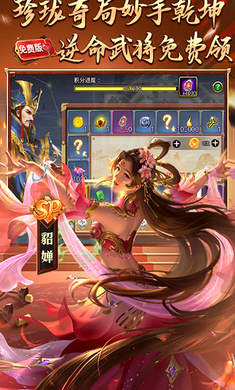 1.1折免费版 | 超爽充值,天天免费领648元代金券! 2.天降红包 | 每天12:00-20:00抢红包,得大量钻石。每晚8点揭晓锦鲤,武将锦鲤可得66抽,钻石锦鲤免费得29997钻石,日日放送。 3.珍珑奇局 | 免费领逆命武将。 4.群雄逐鹿 | 全新开服冲榜,谁是三军上将? 5.义结金兰 | 通过邀请码邀请好友游戏可得丰厚奖励,累计可得价值9980元奖励,更有限定皮肤获取。充值比例1:100 6.汉鼎争衡 | 全新赛季玩法,公平竞技,策略智取。 7.三国新生 | 开服七天,每日登录均可领豪华奖励,神将卡、觉醒印·刘备、觉醒印·关羽、金币、玉牌等君免费领取。